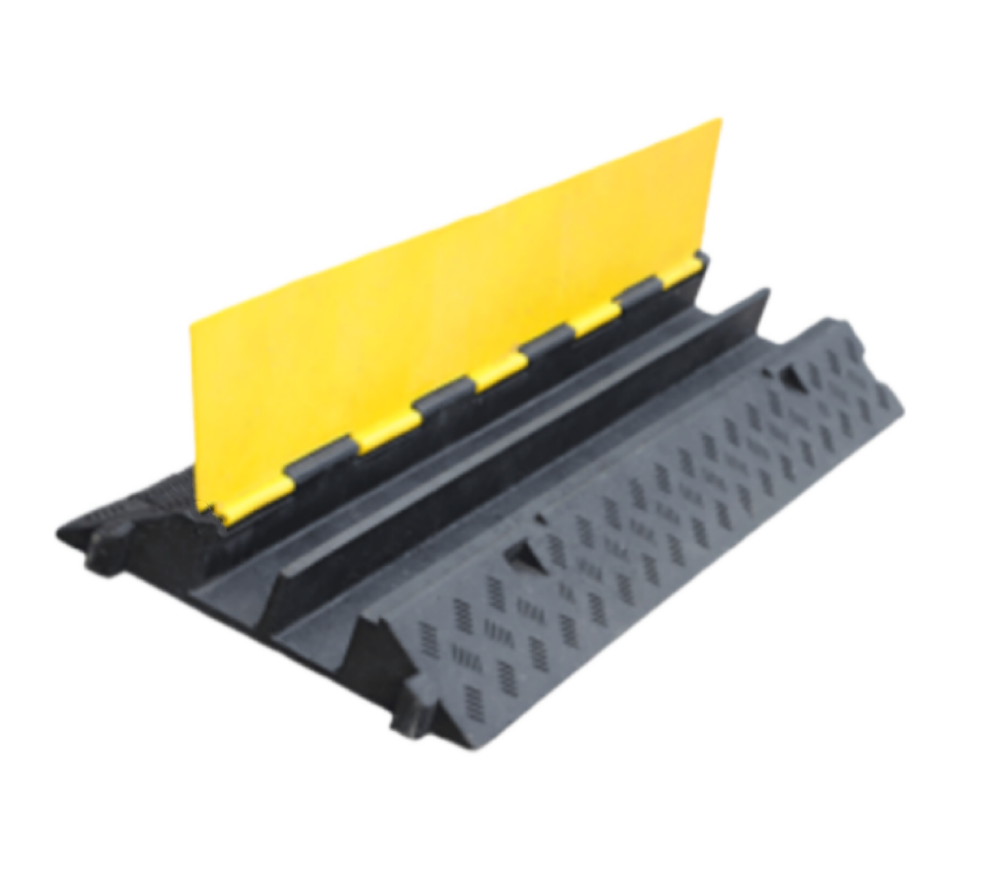 TS-KR-680 Black and yellow Plastic cable protector cover, 2 channel road speed bump ramp cord cover